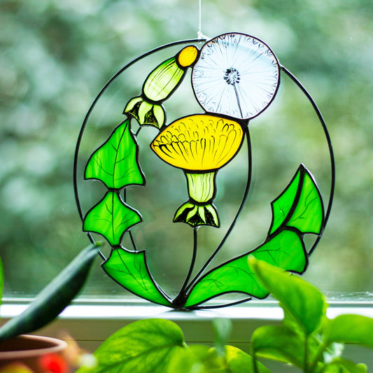Dandelion Flower Stained Glass Suncatcher