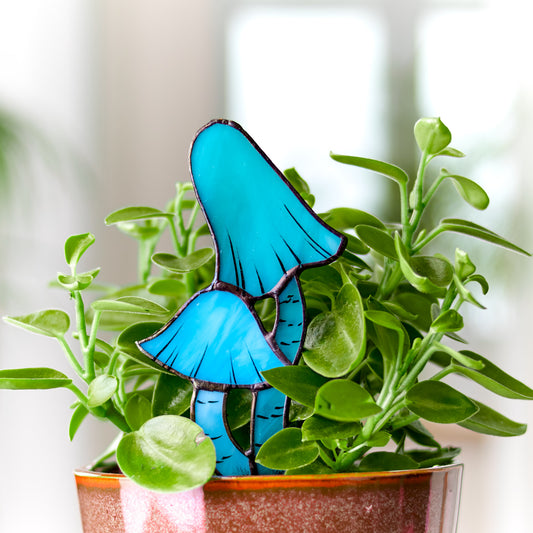 Blue Entoloma Mushroom Stained Glass Plant Pot Stake