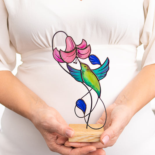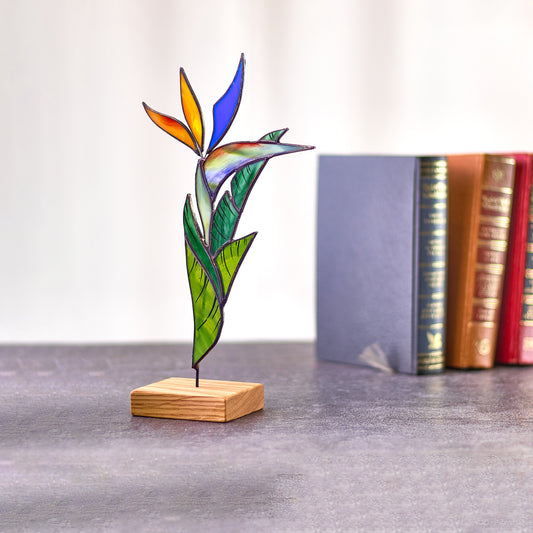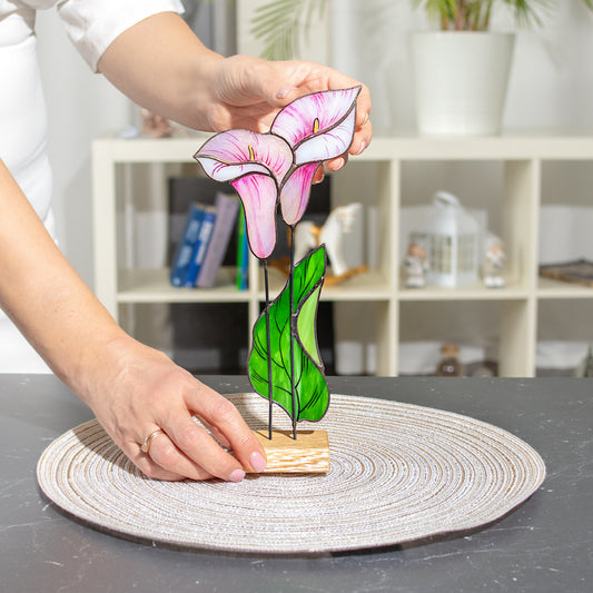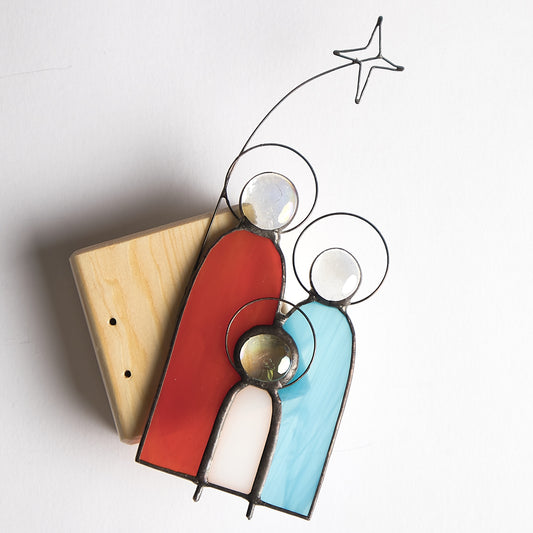 Stained Glass Holy Family Candle Holder with Wooden Base