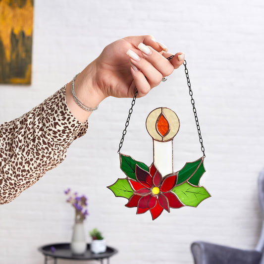 Crow on Pumpkin Stained Glass Halloween Decoration