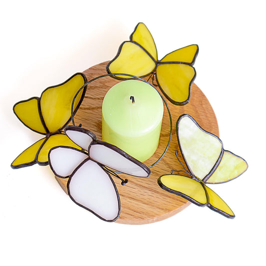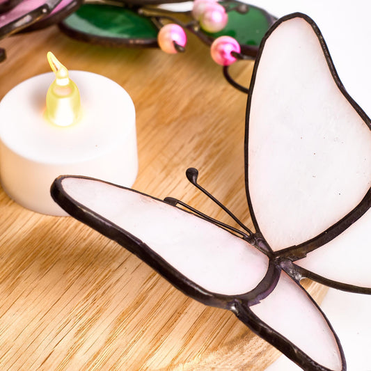 Stained Glass Candle Holder with Pink Blossom and White Butterfly