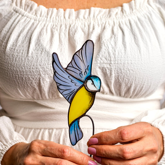 Blue Tit Bird Stained Glass Plant Pot Hugger