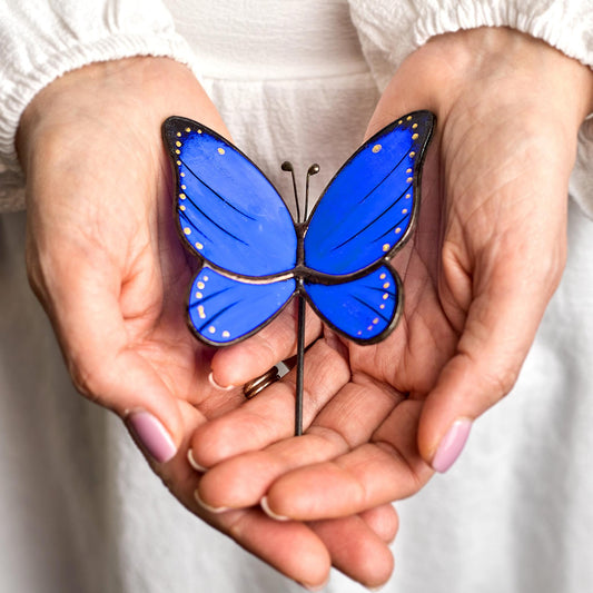 Dark Blue Butterfly Stained Glass Plant Pot Hugger