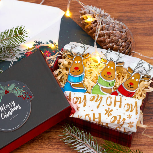 Holiday present for friends: Reindeer Stained Glass Christmas Ornament in Gift Box