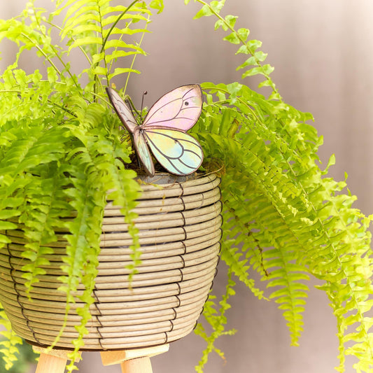 Iridescent White Butterfly Stained Glass Plant Pot Hugger