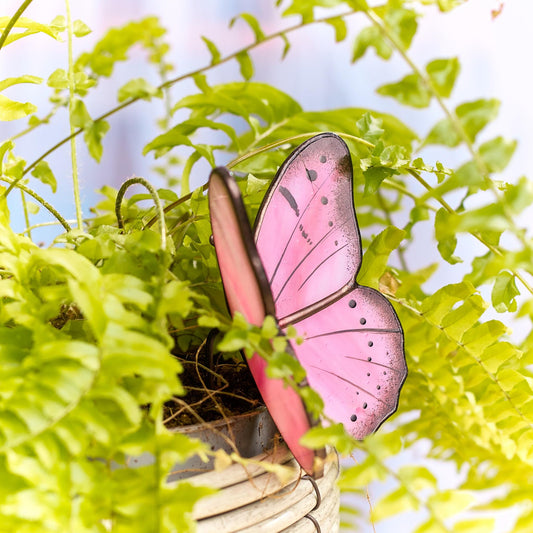Pink Butterfly Stained Glass Plant Pot Hugger