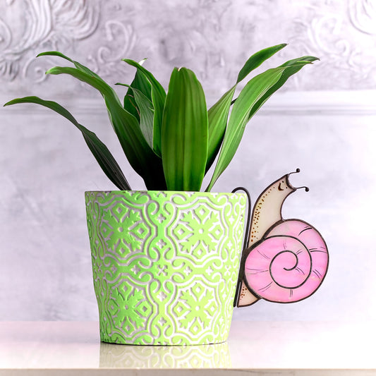 Stained glass art has a rich history, celebrated for its vibrant colors and ability to capture light. Our collection celebrates nature with themes featuring snails, worms, and butterflies. These designs are inspired by the beauty and whimsy of the natural world, adding a touch of enchantment to your plant pots.