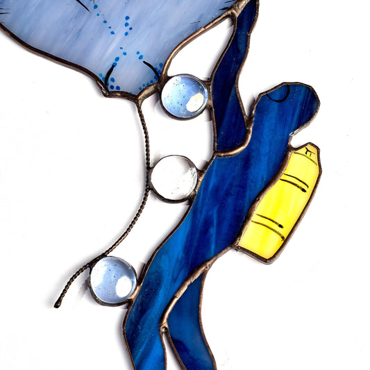 Stingray and Scuba Diver Stained Glass Suncatcher