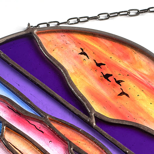 Landscapes: These stained glass suncatchers feature intricate scenes of nature, from serene mountains to tranquil beaches, bringing the beauty of the outdoors into your home.