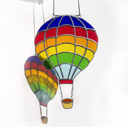 Rainbow Hot Air Balloon Stained Glass Suncatcher