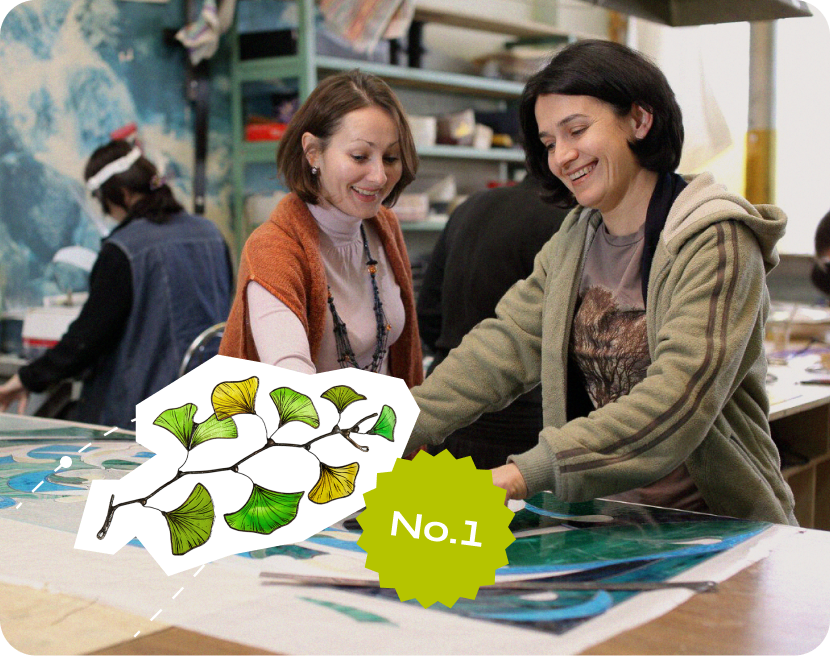 In 2022, our Ginkgo Suncatcher became a hit. We expanded our team and moved into a larger workshop — custom-designed by Oleg for creative flow and production efficiency.