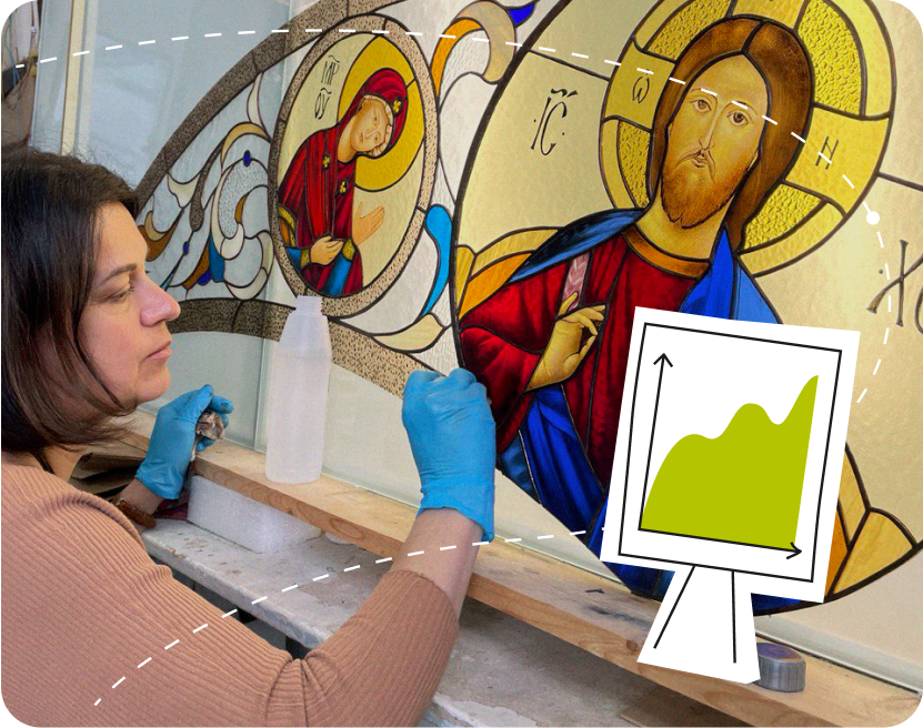 In 2020, her older son Alex spotted stained glass in an Italian souvenir shop. It was poorly made, uninspired, and overpriced. He knew his mom’s work could offer so much more.