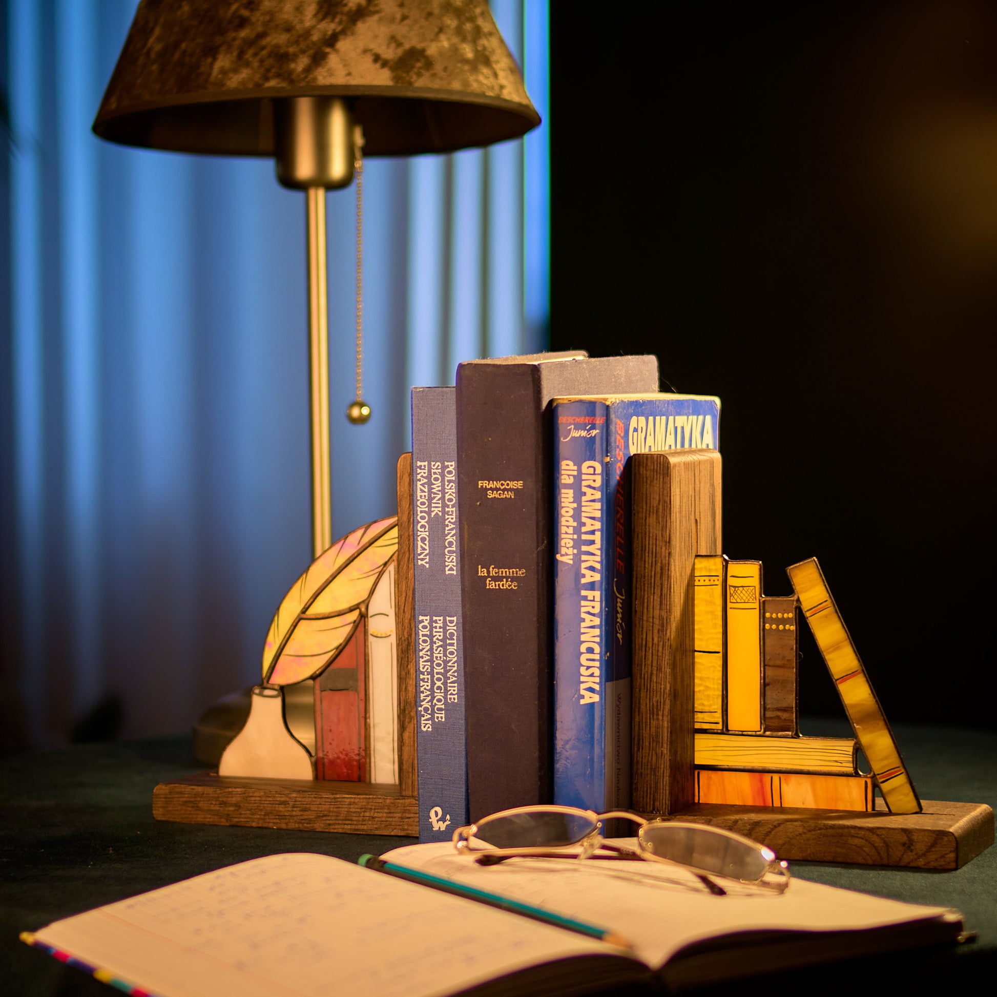 NOTE!: We are excited to offer the option to purchase the glass parts separately from the wooden bases. All our wooden bases are designed to be interchangeable with any of our bookends, allowing you to easily switch the glass pieces based on the season or your interior mood. This flexible option lets you refresh your decor effortlessly and enjoy a new look whenever you desire, without the need to buy a whole new set.