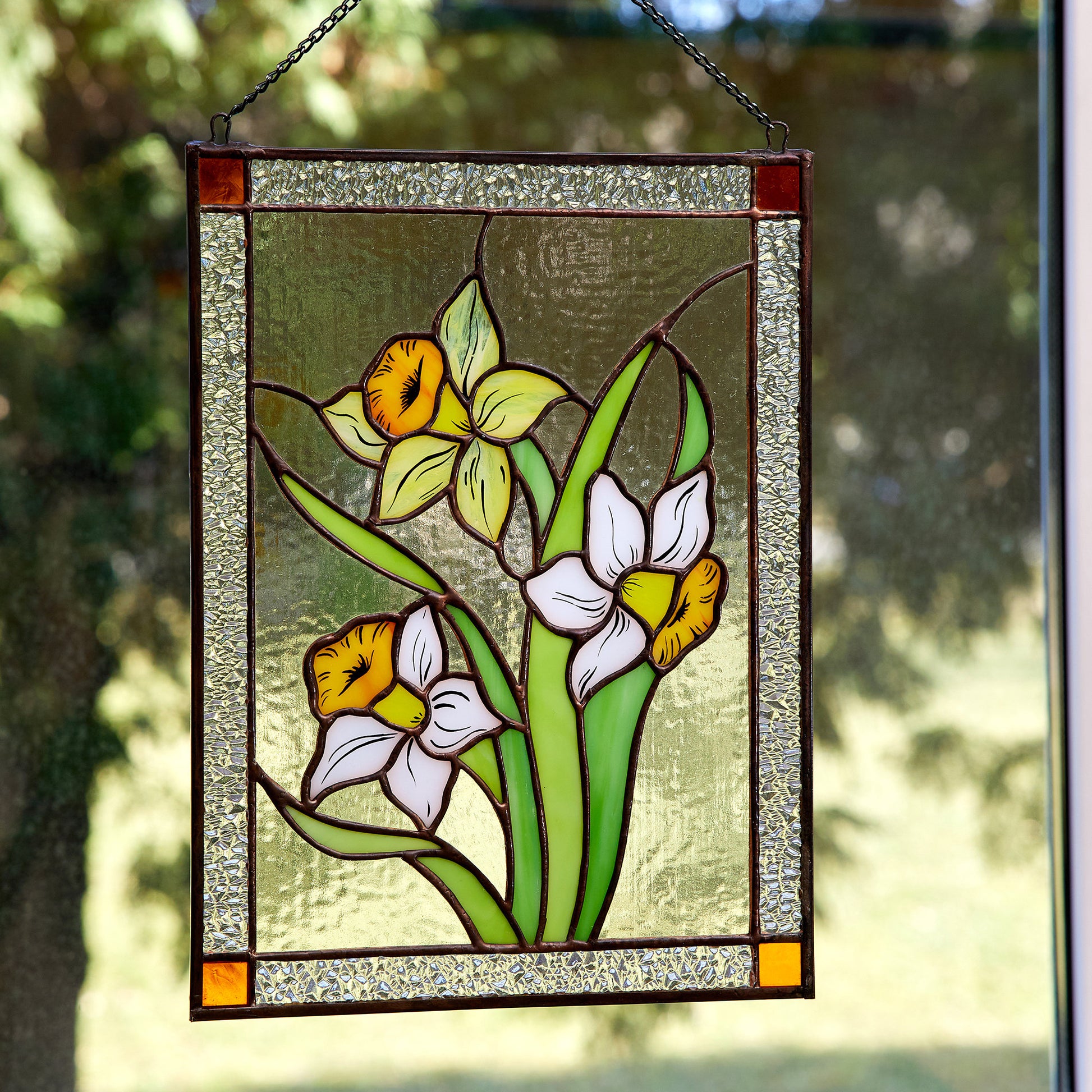 Daffodil Flower Stained Glass Hanging Panel