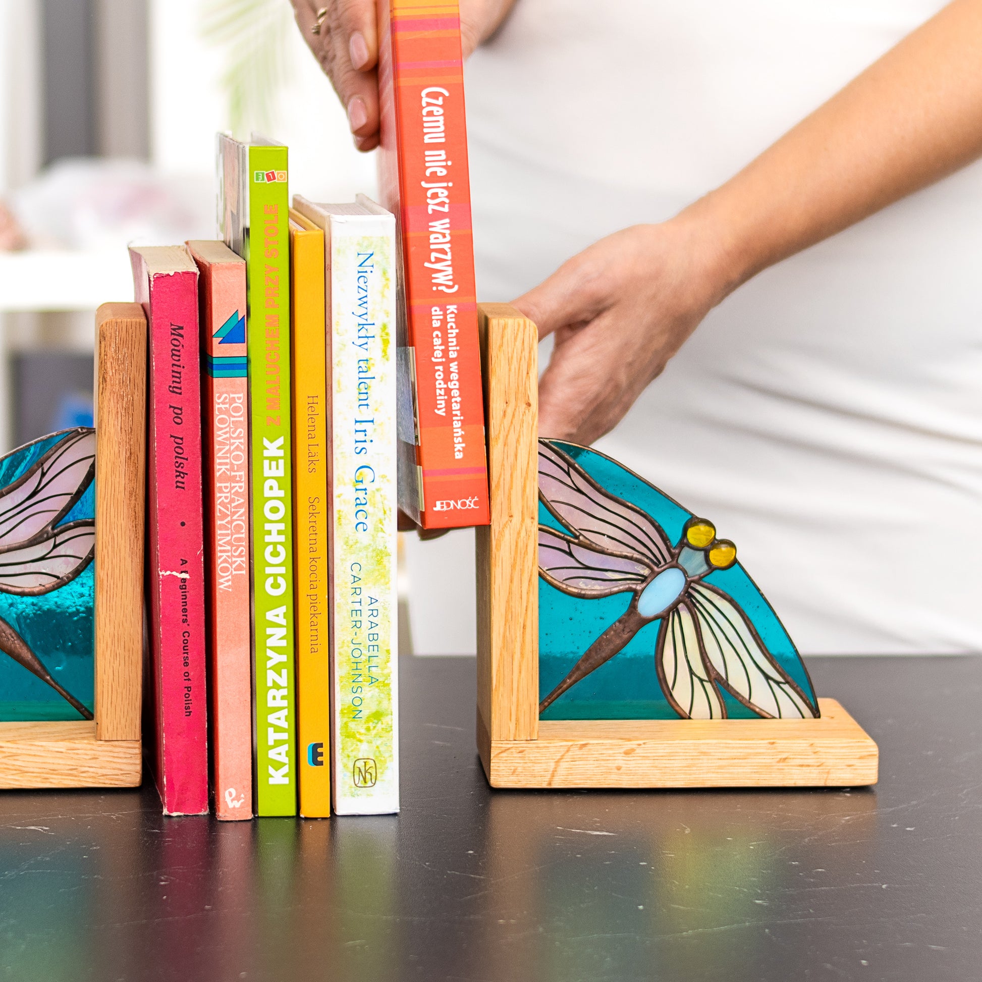 Dragonfly Stained Glass Bookends