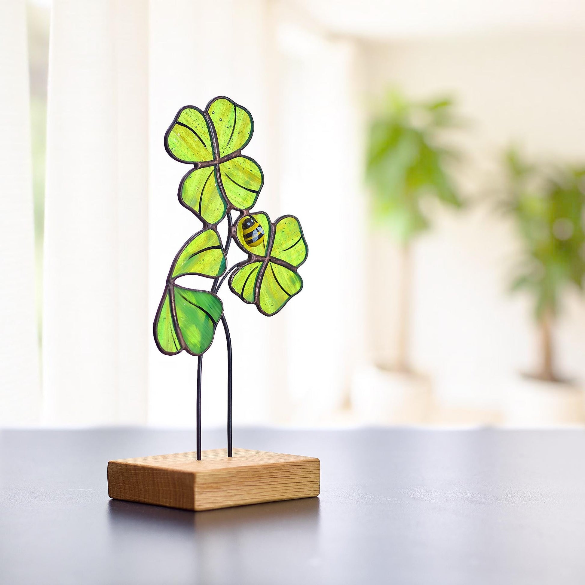 Four Leaf Clover Clover with Bee Stained Glass Tabletop