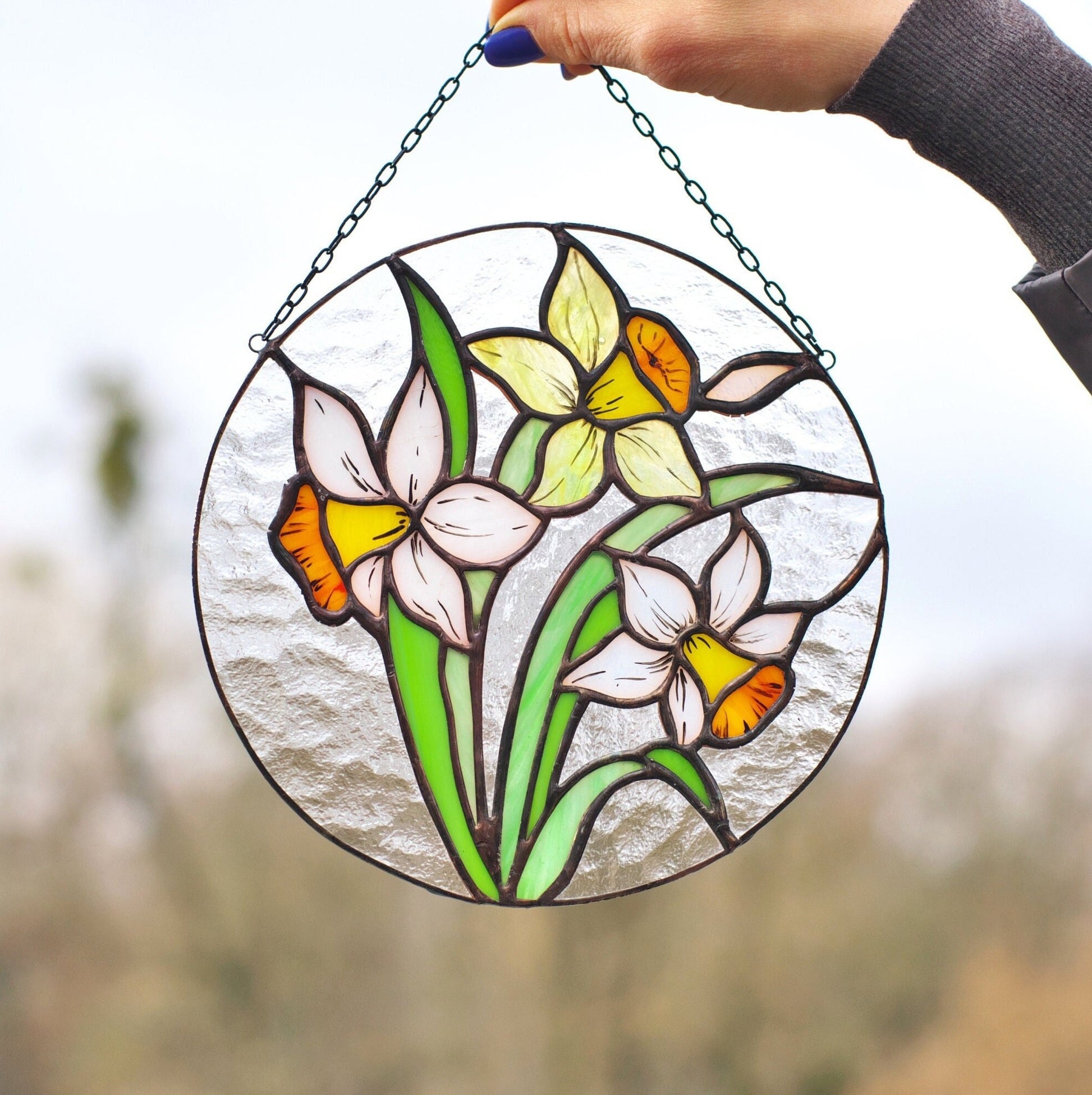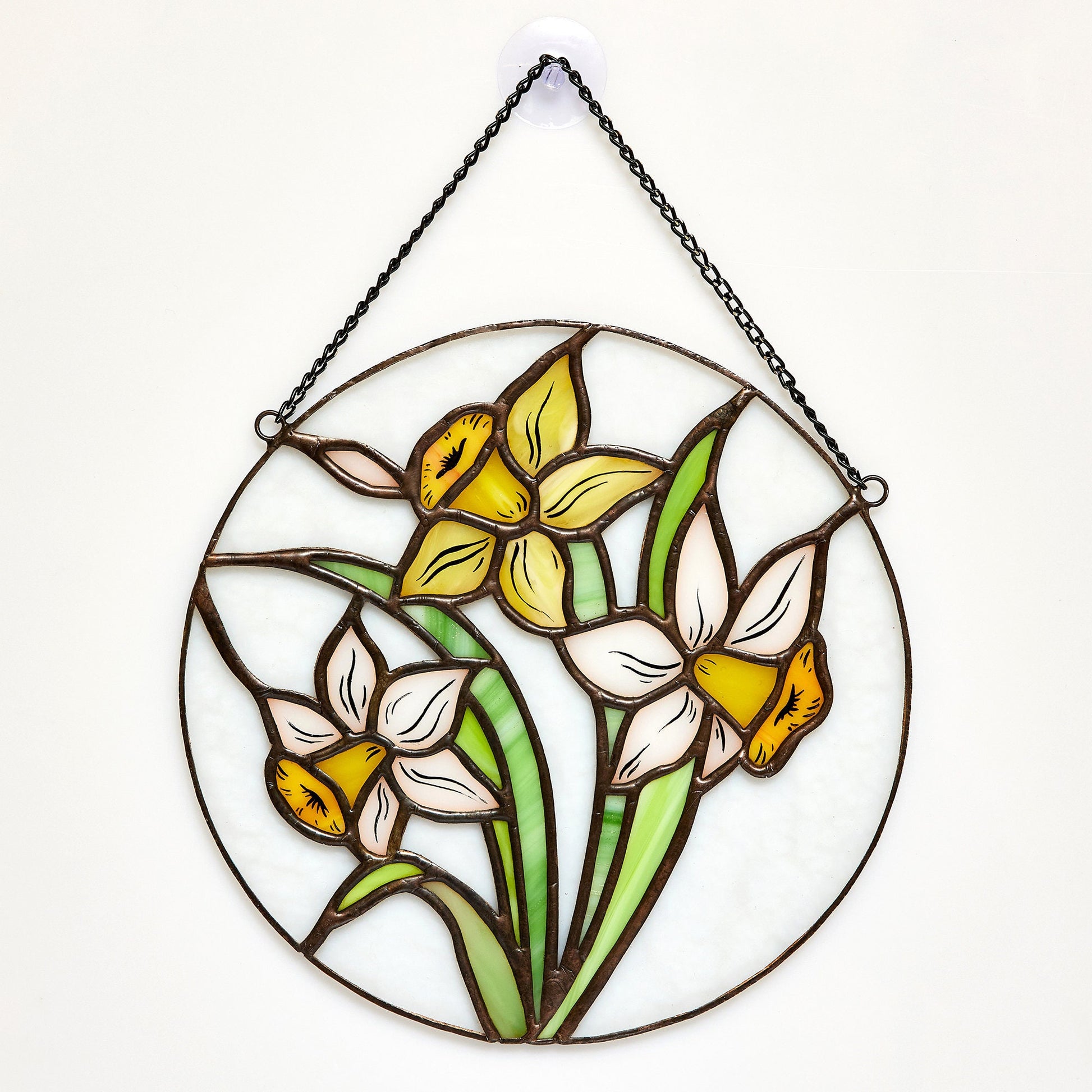 Meet our Narcissus Flower Stained Glass Panel—a handmade beauty in white and yellow that's ready to brighten any corner of your home. This isn’t just decor; it’s a little slice of nature captured in glass, crafted with love and care by our skilled artisans.