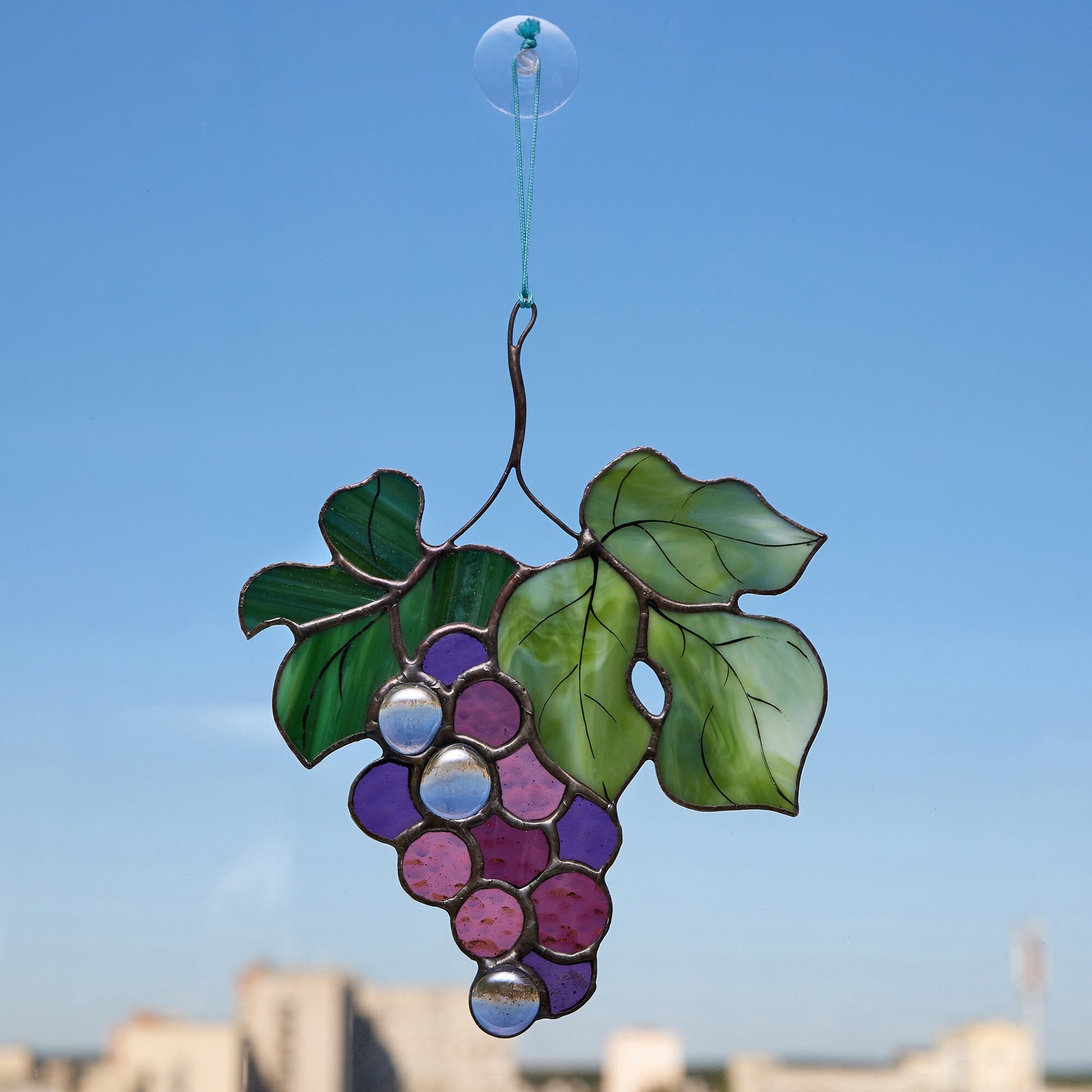 What’s included? You’ll get the grape branch itself and a vacuum suction cup for easy hanging on your window.