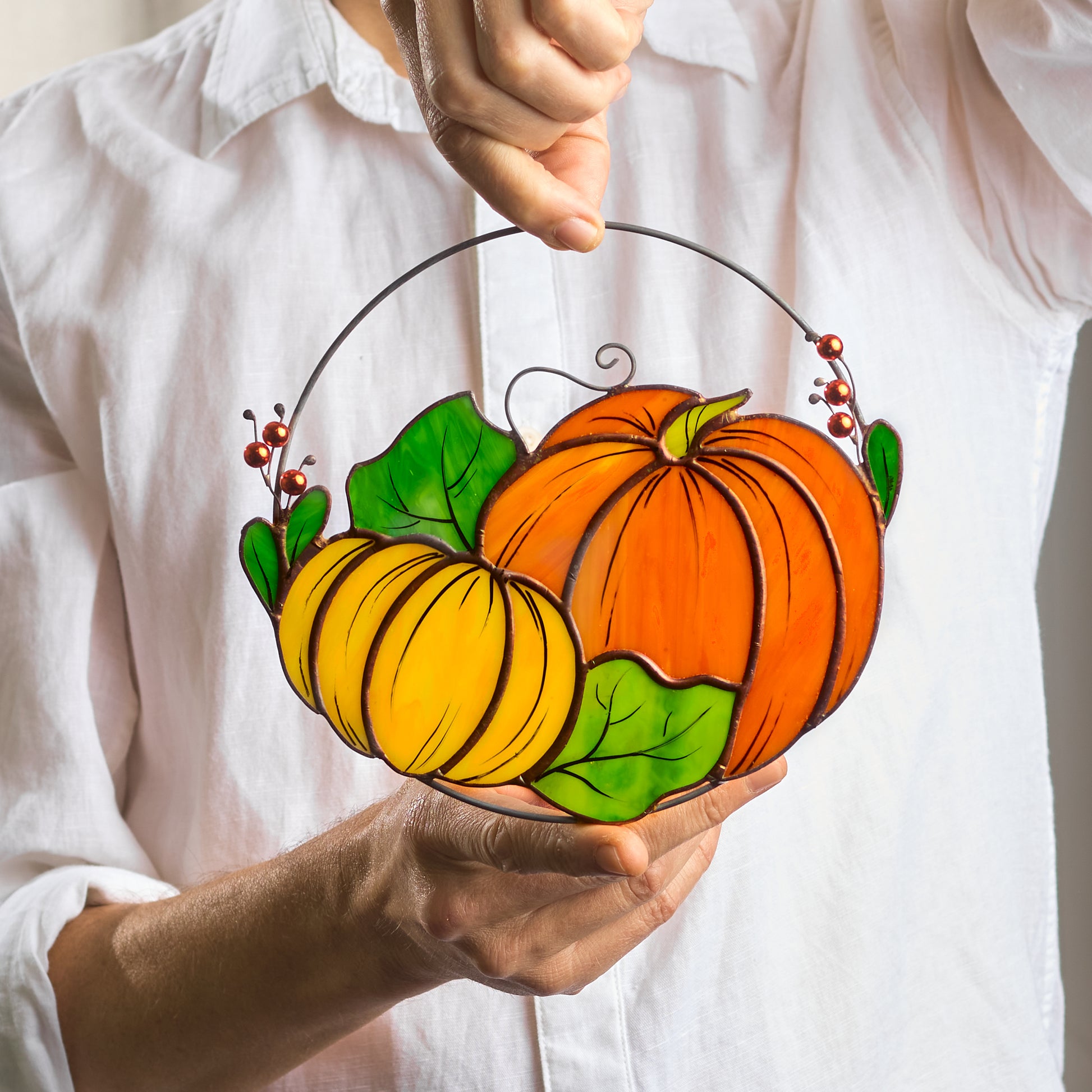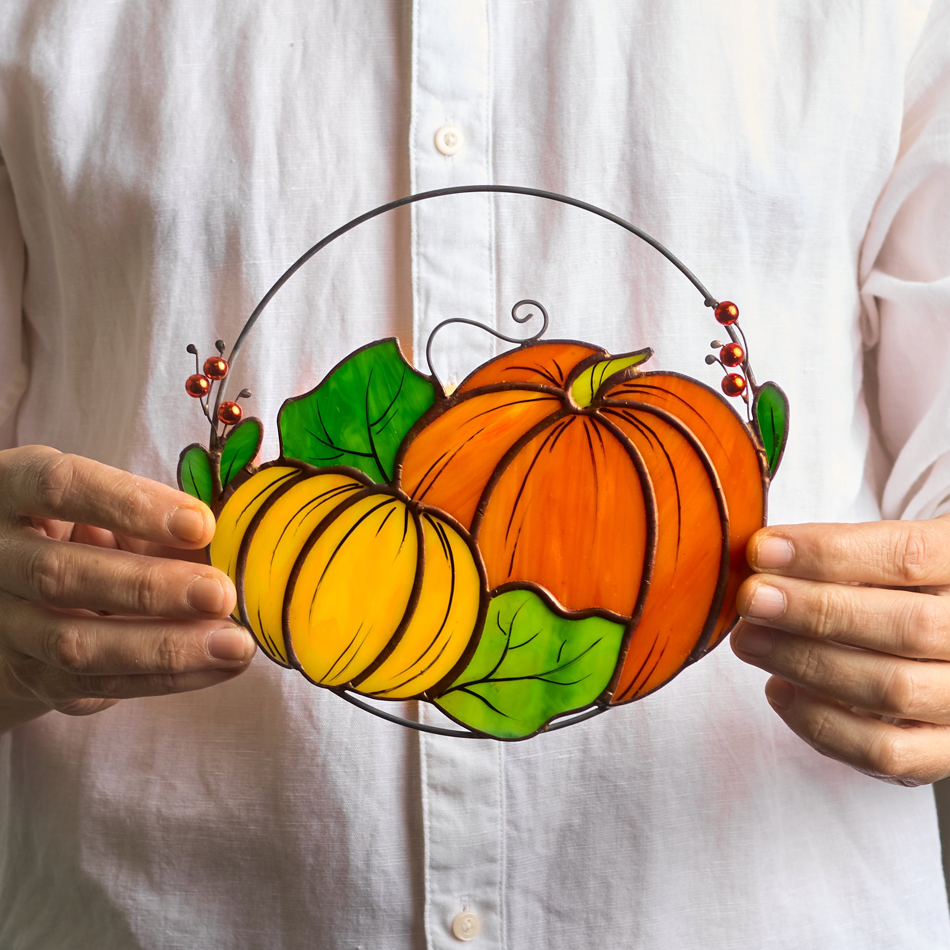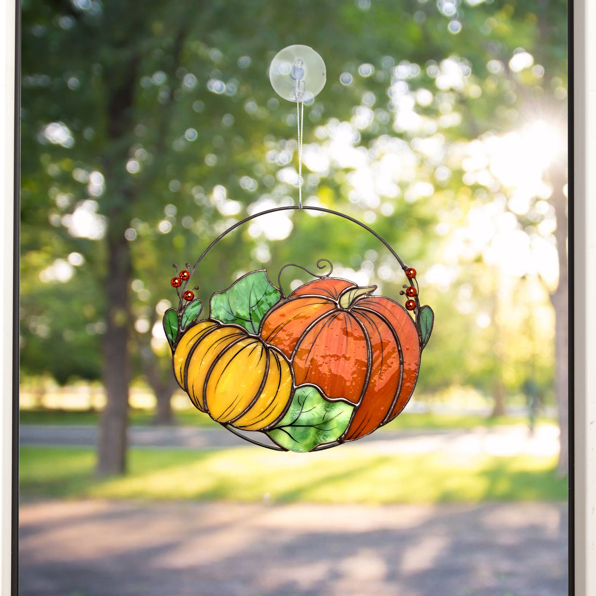 Thanksgiving Pumpkin Stained Glass Suncatcher
